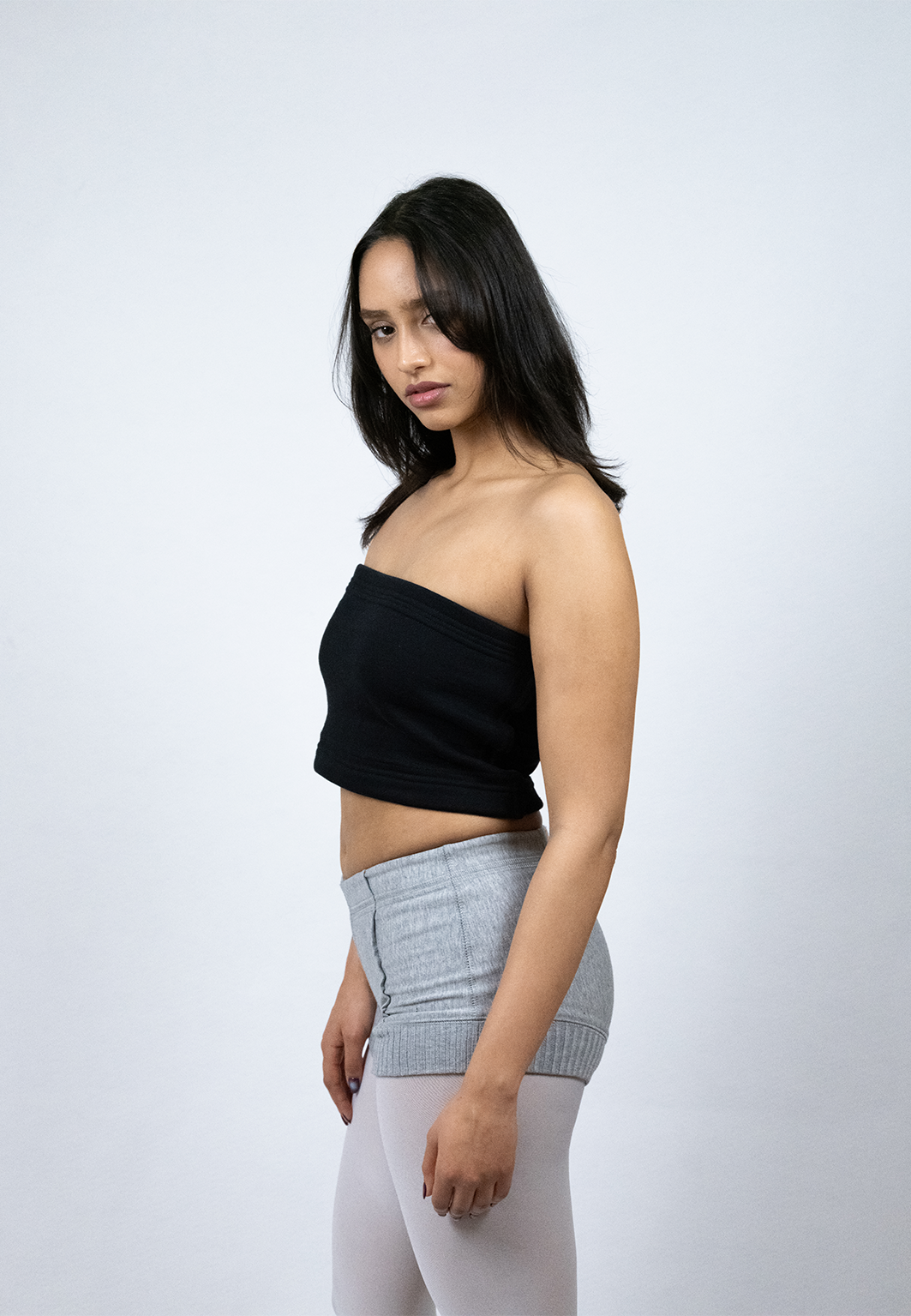 Tight stretchy mini shorts in light grey colour with matching rib hems
